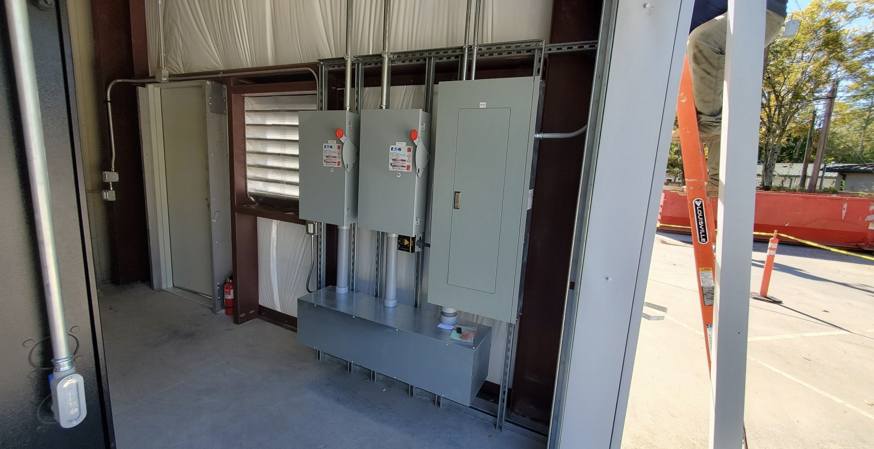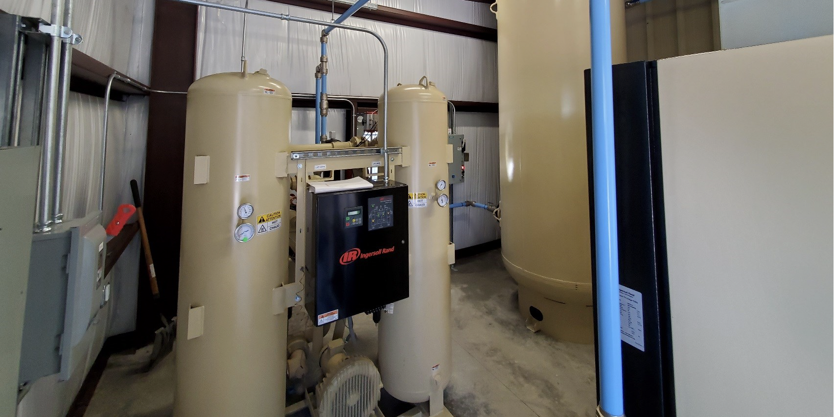 This design-build project consisted of the design and construction of a small pre-engineered metal building lean-to structure to house air compressor equipment. The project features site demolition, concrete foundations, a pre-engineered metal building, electrical service upgrade, and overhead door.